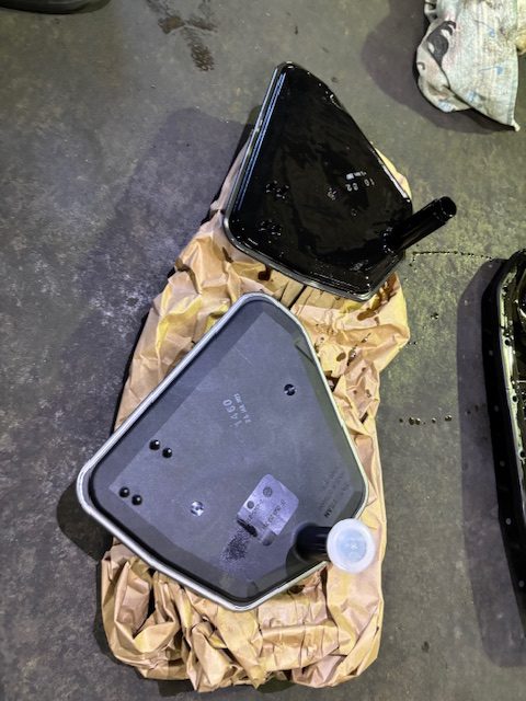 オイルパンの底には汚れが溜まってます このままオートマオイル交換だけすると新しいオートマオイルの洗浄効果で汚れが舞い上がりバルブボデーを詰まらせ不具合が発生します